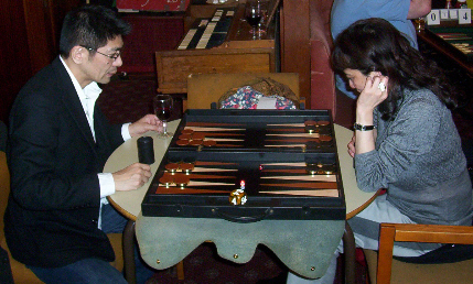 Ian won this one, 7-0, although the double backgammon that clinched it (from a 3-0 lead) stemmed from an epic back game by Derek that was unfortunate not to bear fruit.