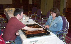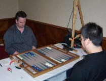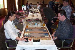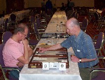 ![]() | After despatching Tim, it was back to the main playing area, where current Premier One leader Jason Champion was Nigel's semi-final victim |
