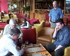 ![]() | Eventual winnerNigel Merrigan adjourned to the bar to defeat Bristol's man of the moment, Tim Line in their main flight quarter-final |