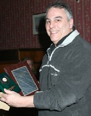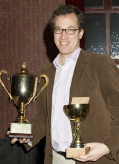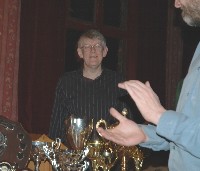 Ian Tarr gets some applause for some reason or other. He actually took some prizes during the evening, including the runner-up prize in Premier Two, and the Ed Turner sponsored Handicap trophy title. %%![]() |