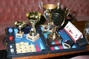 These three trophies, kindly awarded by John Slattery, commemorate the winning of at least ten successive matches in contributing Bristol competitions. The recipients were Ed Turner, Martin Hemming, whose trophy is a little larger than the others because he actually managed eleven straight wins, and Tony Walters, who won ten straight matches in the space of just 20 days on his way to the Conference title. ##![]() |