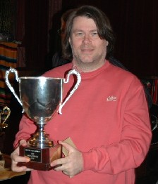 The fifth Bristol Masters tournament saw Stuart Mann showing that, even in a disappointing year, he is still a major threat in any competituion he enters. Here he shows off the salver he won early in 2005, when he beat John Ould in the final. %%![]() |